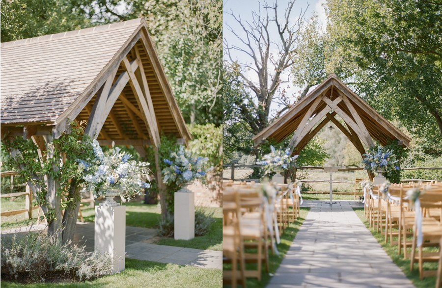 The Arbour at Millbridge Court is a beautiful oak structure licensed for outdoor ceremonies between April and September. The garden is surrounded by tall photinia trees which gives it a secluded and private atmosphere and creates a unique space in the garden.