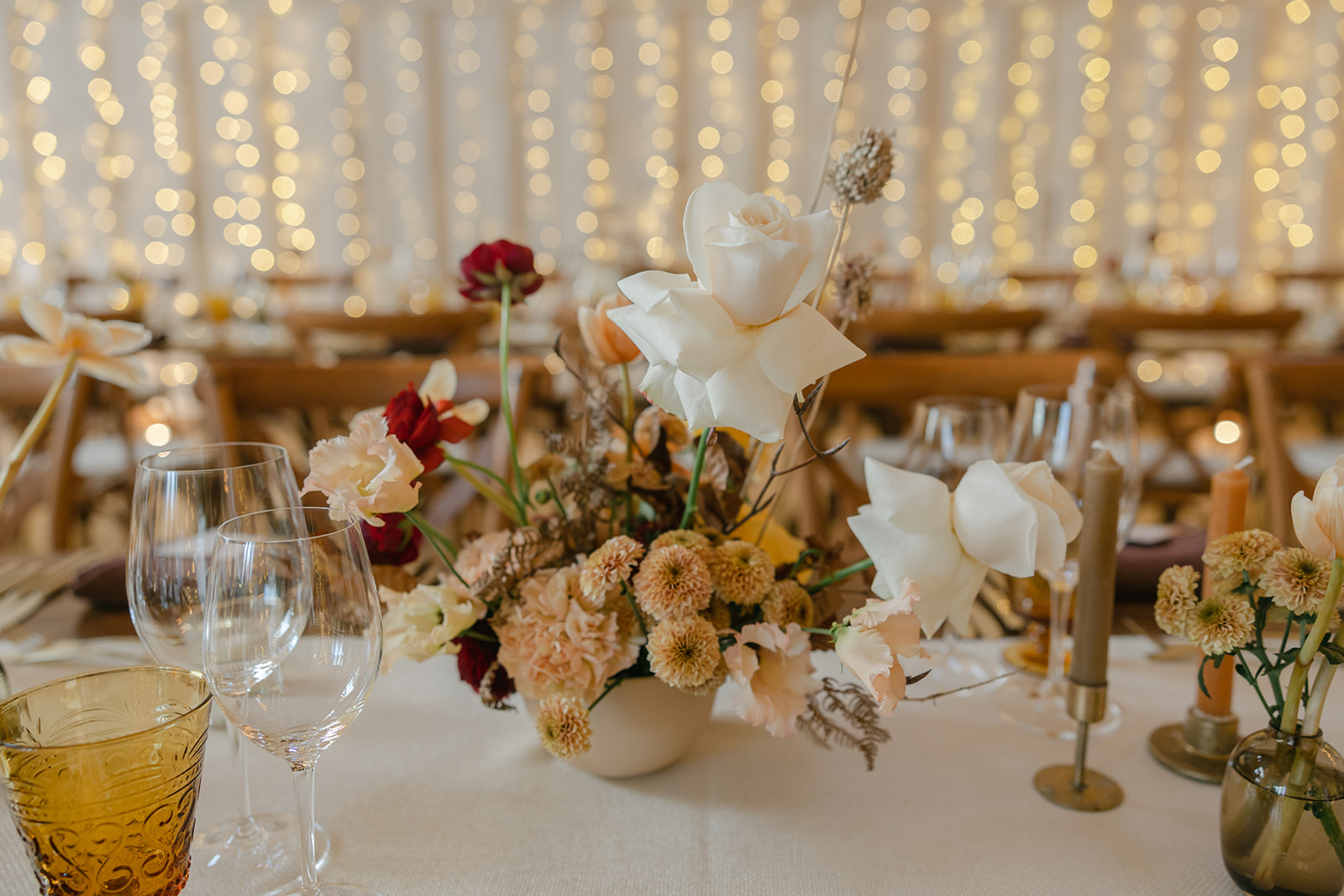 I adore creating table flowers, specifically bowl arrangements. They work perfectly for both round and long tables, and are the perfect choice for impact without becoming over powering to the room, or impairing guests’ view and interaction.